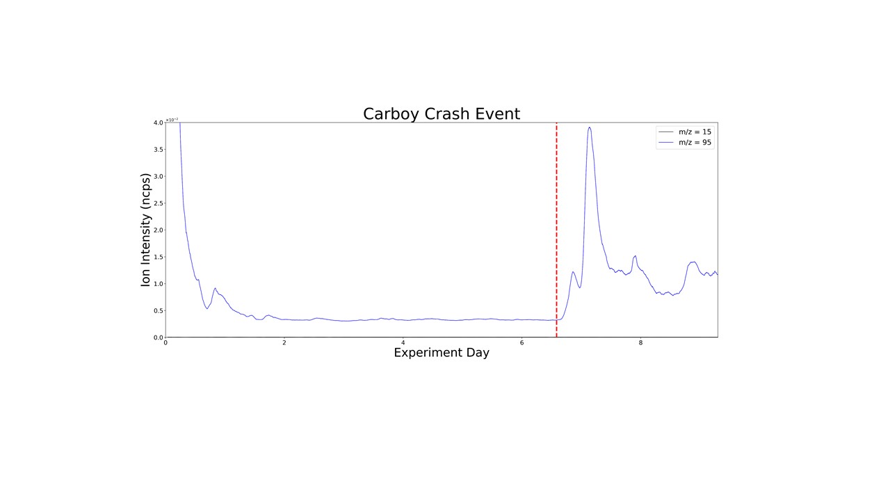 Figures 1 and 2 are data sets from a recent Carboy experiment, which thoroughly validated the data from the PNAS paper using a different reagent gas, benzene, resulting in an increased number of potential diagnostic peaks.