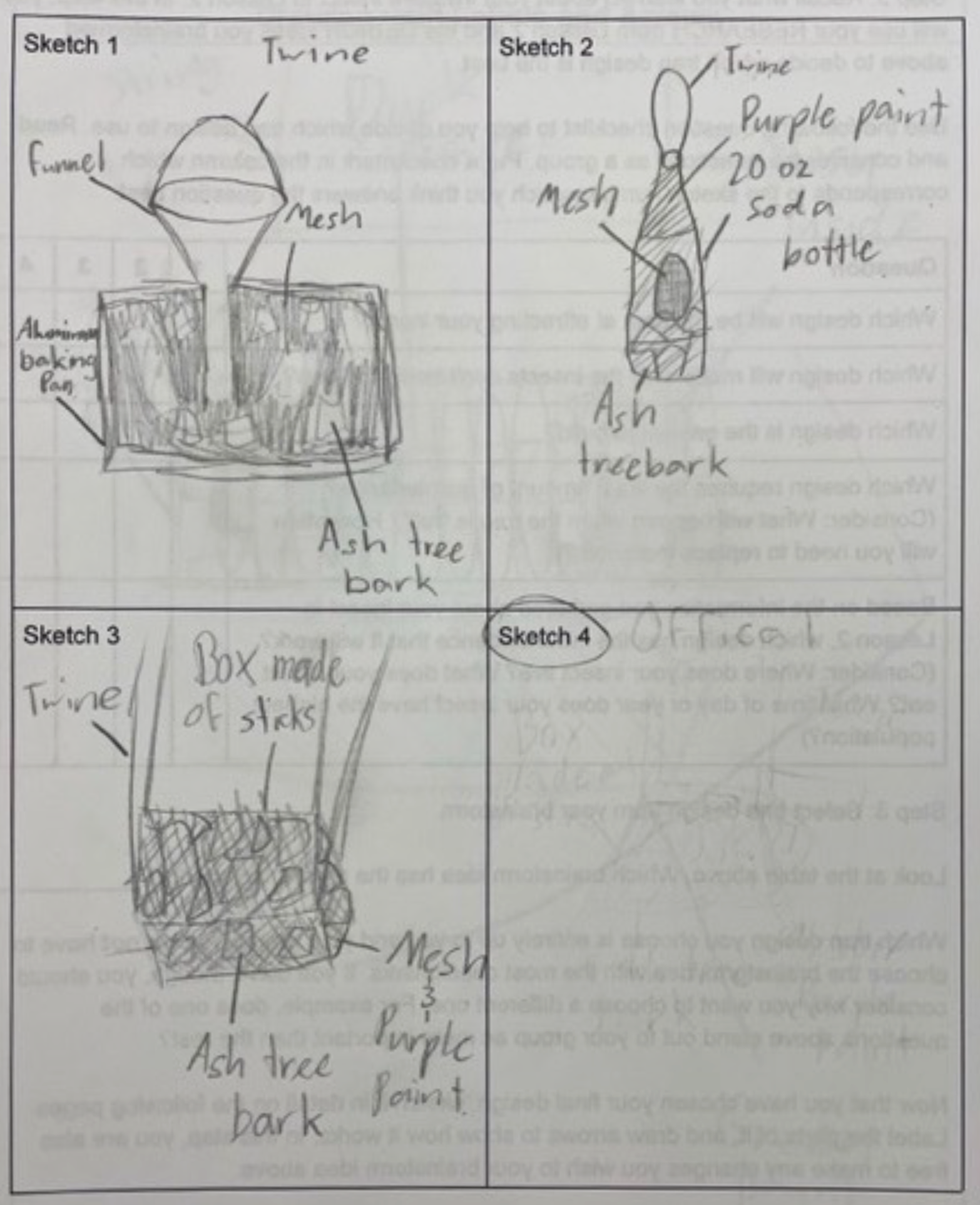 We designed a six-week curricular unit for youth ages 11-13 that extends environmental science learning through the seven stages of engineering design. In our program, students Define the problem as a local invasive insect disrupting a local ecosystem. An invasive species is an organism that is not native to the local environment and can harm the economy, environment, or human health. In teams, students conduct Research on one invasive insect, including food, habitat needs, and predators (if any). Next, they brainstorm at least three Designs for a trap that can collect their invasive insect. Student trap designs take into account the phase of the life cycle of the invasive insect, pheromones or lures to attract their insect, trap placement, and the construction of a cost-effective trap that can be maintained over time. Feedback includes sharing designs with other student teams and local environmentalists. Place includes locating the time of year and location for the most effective capture. Finally, Educate includes synthesizing key ideas from their designs to inform local stakeholders about possible implementation in their area.
