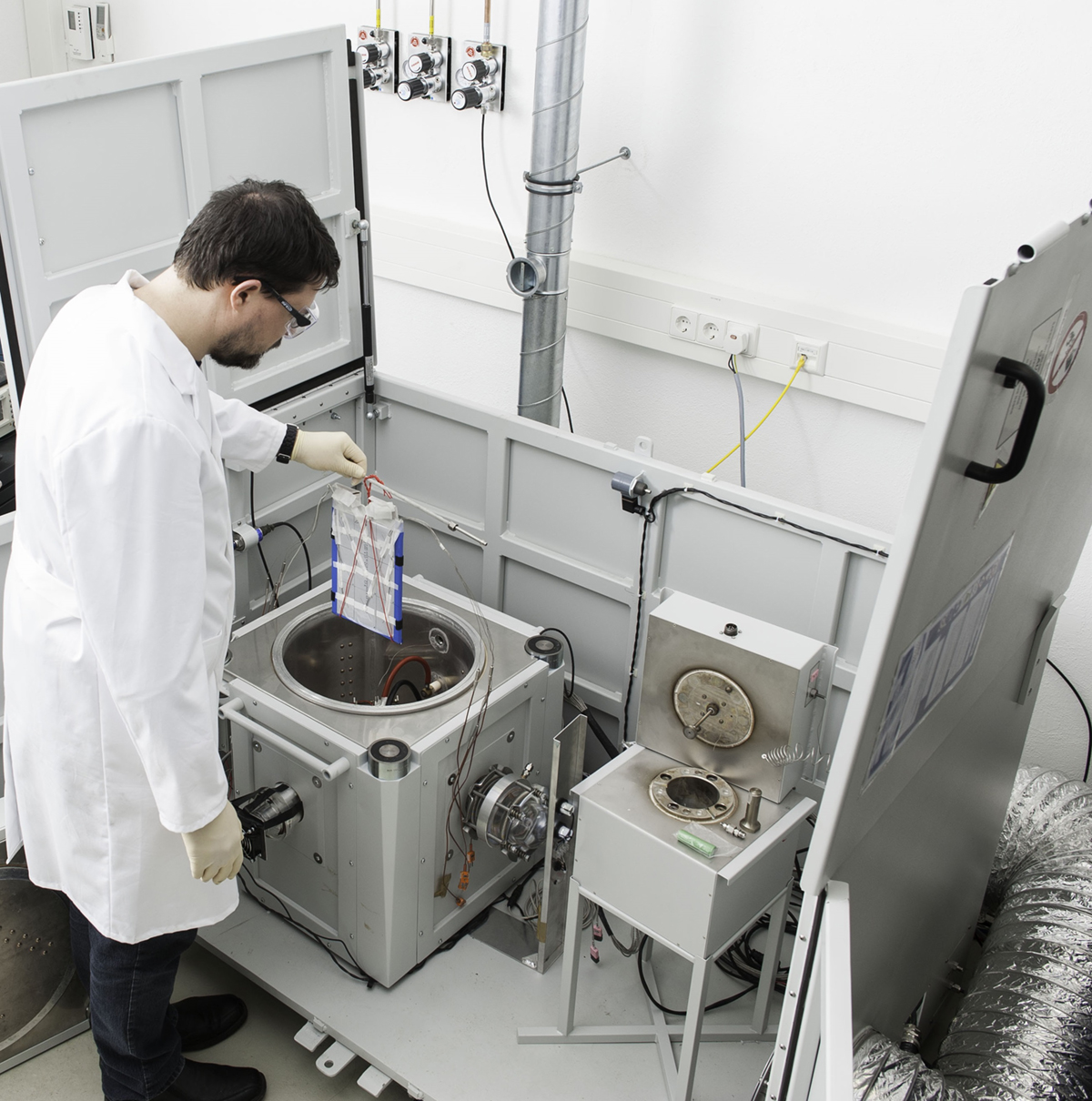 This center operates Europe’s largest battery calorimeter laboratory and provides six Accelerating Rate Calorimeters (ARCs) of different sizes – from coin to large pouch or prismatic automotive format (Fig.1) – which allow the evaluation of thermodynamic, thermal and safety data for Lithium-ion cells on material, cell and pack level under quasiadiabatic and isoperibolic environments for both normal and abuse conditions (thermal, electrical, mechanical).