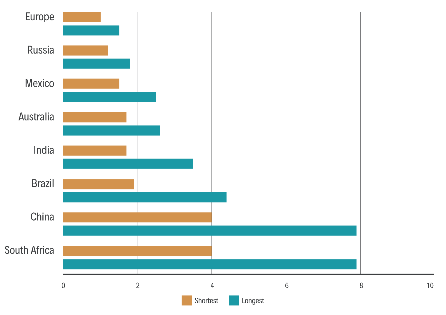The length of the registration phase can vary tremendously between countries, often associated with the economic development of the country (Figure 1). The 2020 survey data illustrates a marked difference between countries, ranging from an average of 1.3 years to 6.4 years. Target deadlines for scientific reviews of marketing authorisation applications should be set in legislation.