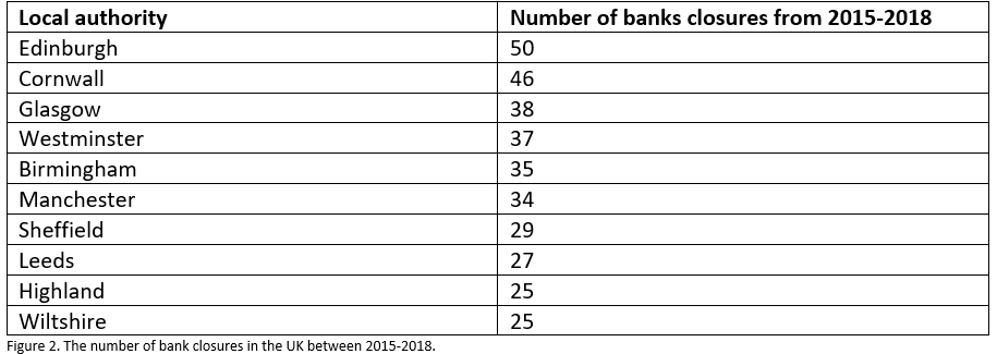 Research reveals that many banks around the UK have been closing their local branches over the past two years. Edinburgh and Cornwall have been the most affected with just over 50 closures:
