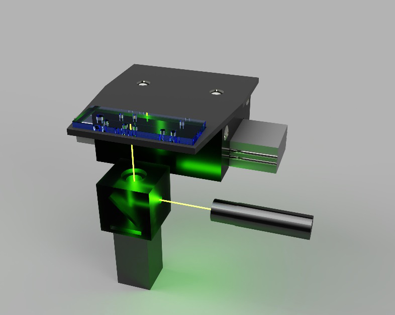 Recently our work has been centred around the use of integrated optical fibre detection in microfluidic devices.1, 3-4 The devices used a thin optical fibre to form an optical bridge that allows for simultaneous detection at two points that can be spaced hundreds of microns or even tens of millimetres apart without any additional optics. This detection scheme is possible because of the flexibility of the optical fibre and the relatively small diameter of the fibre face (125 μm). The optical fibre’s small footprint and ability to transmit and receive light even while being bent makes it an attractive alternative to bulkier optics for scanning detection in the POC device.