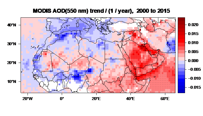 Klingmüller, K., Pozzer, A., Metzger, S., Stenchikov, G. L., & Lelieveld, J. (2016). Aerosol optical depth trend over the Middle East. Atmospheric Chemistry and Physics, 16(8), 5063-5073. DOI: 10.5194/acp-16-5063-2016