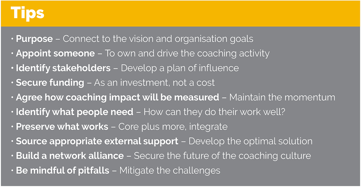 There are many custodians when establishing a coaching culture; HR, L&D, Executive Committees, internal coaches and more. If you are the custodian in your organisation, the following are points for you to consider