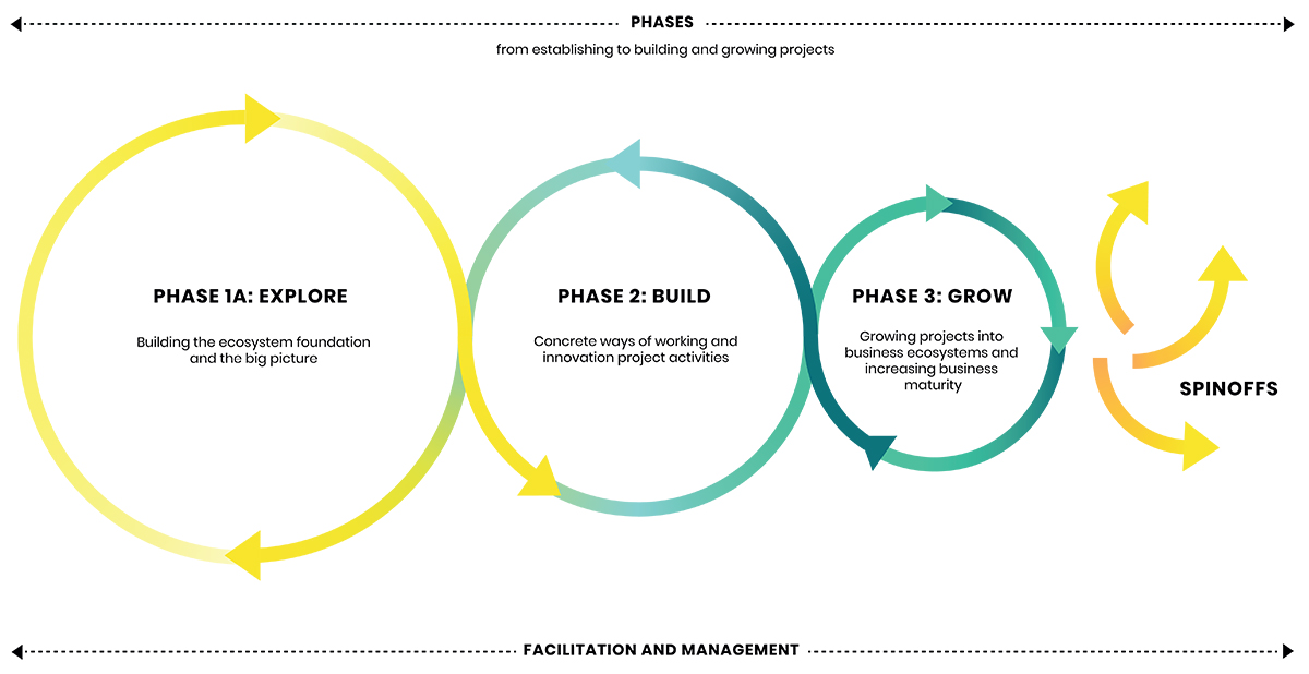 As the ecosystem develops further to the Build Phase, structured ways of working are needed. Ecosystems should be open and flexible, but still need strategic activity plans and milestones to be efficient. The task of the ecosystem facilitator is to make sure that these exist. Furthermore, extensive communication, both external and internal, should be maintained throughout the ecosystem lifecycle.