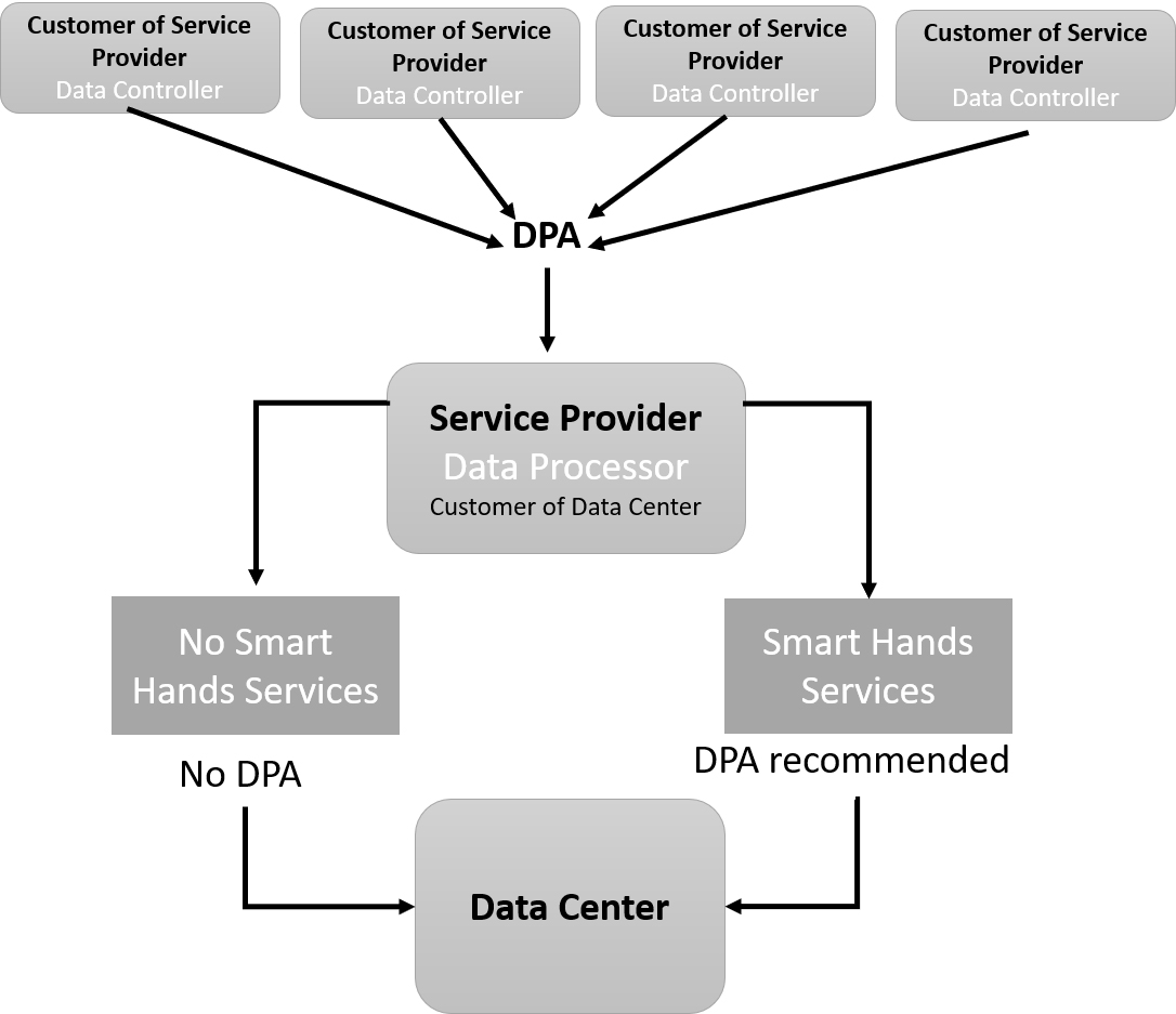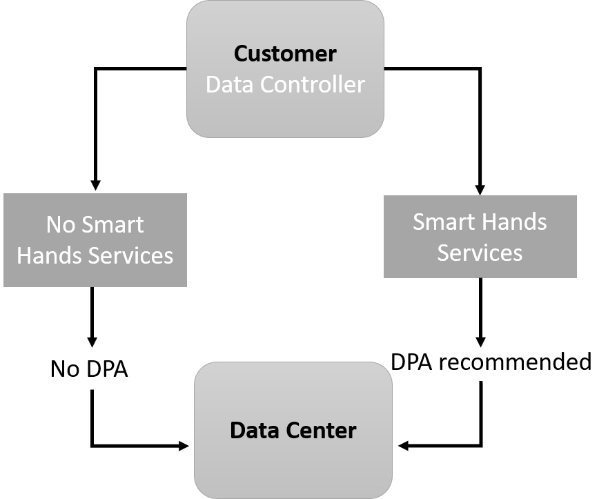 Scenario 2: On the other hand, some data centres, like Green Mountain, offers “Smart Hands” services to their clients. These services may include technical personnel getting access to the server and the possibility to log on. In theory, they would have the possibility to access and process personal data. In that context, a DPA between the parties could be considered.