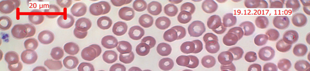 The red cells of patients with rare types of anaemia are intolerant to transportation that have severe impacts on cell morphology. Thus, it would be ideal to perform morphological analysis at the spot, with as little volume as possible and as little technical and human errors and inconsistencies as we can possibly afford. We need more advanced, robust and reliable tests coupled to new approaches in analysis to detect red cell shapes that we plan to develop together with partners from Arivis AG. We currently use peripheral blood smears counting the number of cells with abnormal shapes. Together with our biologist-partners, we plan to get more information about cell shape features in fixed and native red cells, by introducing new parameters to describe cell morphology and by implementing new tests to observe the morphological response to stress.