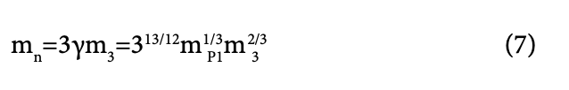 which, considering the heaviest neutrino type, m3 = 43.7 meV/c2 [9], mPl= 1.2209.1028 eV/c2 =1.2209.1019 GeV/c2 gives m =939.565 MeV/c2, which, amazingly, is the neutron mass [10]!