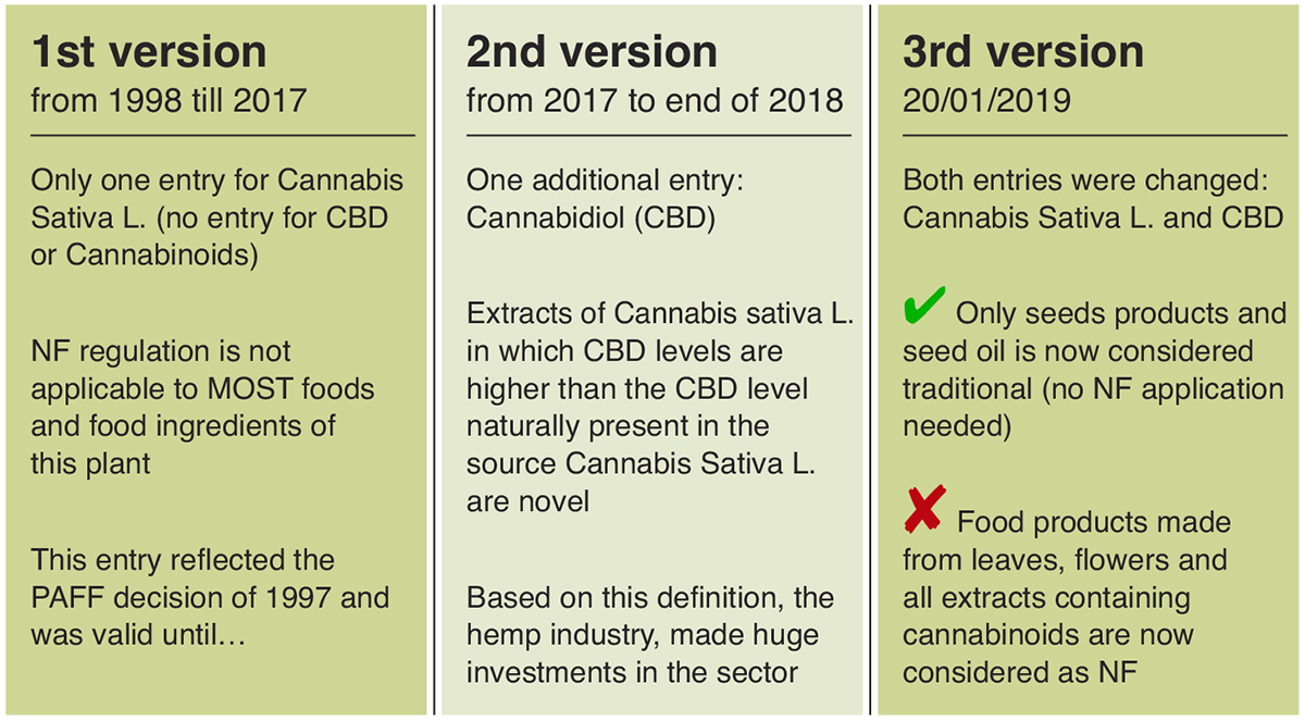 Below is an analysis of the various entries relating to Cannabis Sativa L (hemp), Cannabidiol (CBD) and the recent addition of a new category, Cannabinoids.