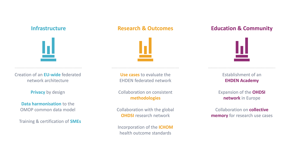 Ultimately, EHDEN is striving to ensure 21st-century research can be conducted with 21st-century tools, engaging with the wider community in terms of performing observational research, supporting R&D, trial optimisation and a new clinical trial paradigm. As Europe prioritises digital healthcare over the term of the new Parliament, we hope EHDEN will become a centre point for a strategic development of a federated network and open science community supporting research, clinical care, evidence generation and better outcomes for its citizens and patients.