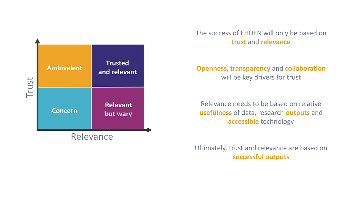 Interoperability and standardisation are technical challenges, but EHDEN is working within a socio-technical construct which also requires trust of all involved, especially Data Partners and Researchers, whilst ensuring compliance with GDPR, local and regional governance and approval processes.