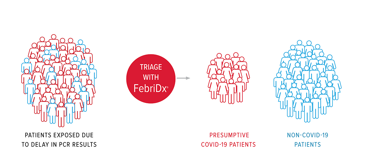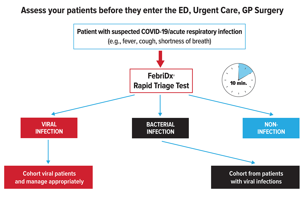The ability to rapidly triage patients at the point of contact, when clinical management decisions are being made, including the need for isolation is a critical component of the national pandemic response. FebriDx® is the first and only rapid test to differentiate a viral from bacterial acute respiratory infection and is being used in hospitals and other healthcare settings to rapidly triage symptomatic patients with ARI/suspected COVID-19.