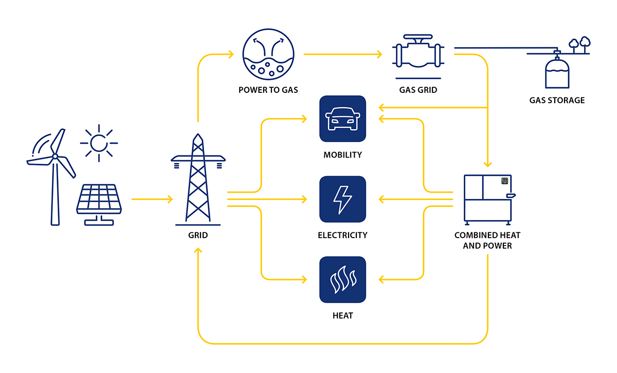 Moreover, there is no need to worry about whether we will have a stable supply of power or gas. As opposed to power, surplus green gas can be stored infinitely without any loss and, when needed, make up for the fluctuating renewable energy sources wind and solar.
