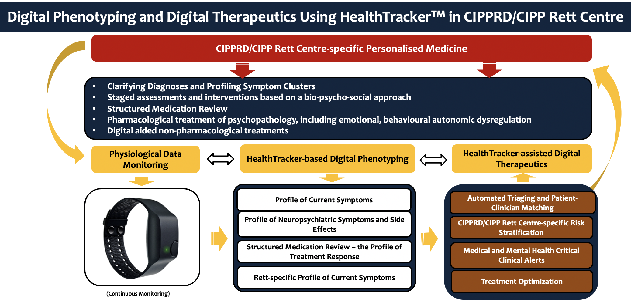 As we move forward in challenging times, the focus of the CIPP Rett Centre is to be a beacon for care and support for patients with Rett Syndrome everywhere. It is a place for clinical excellence, and by harnessing a translational approach, using the HealthTrackerTM, the Centre posits itself as a place for learning and disseminating new knowledge. The CIPP Rett Centre will continue to make new knowledge available quickly to the Rett community. This optimisation of resources will enable families and clinicians to monitor and improve the quality of care for patients more effectively.