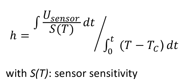 The heat transfer coefficient (HTC) h is another important parameter, that can be measured using a HFS. It is given as the quotient between the area of the sensor signal during the cycling of a cell and the area of a thermocouple signal at the same place: