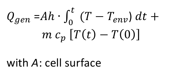 After the determination of the Cp value and the HTC, the temperature data that are recorded by thermocouples attached to the cell surface can be converted to the generated heat to determine cooling requirements for the thermal management system: