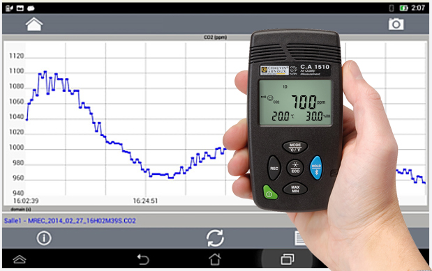 Devices for measuring CO2 concentration are readily available and the C.A.1510 indoor air quality monitor from Chauvin Arnoux is an excellent example. This can measure and record not only CO2 concentration, but also relative humidity and temperature, two other factors that have a critical bearing on comfort levels within a room. As well as providing instantaneous readings, this versatile device also has a data logging function. This makes it possible to examine measurements over a period of time to see, for example, if there was ever any point where acceptable CO2 concentrations were exceeded.