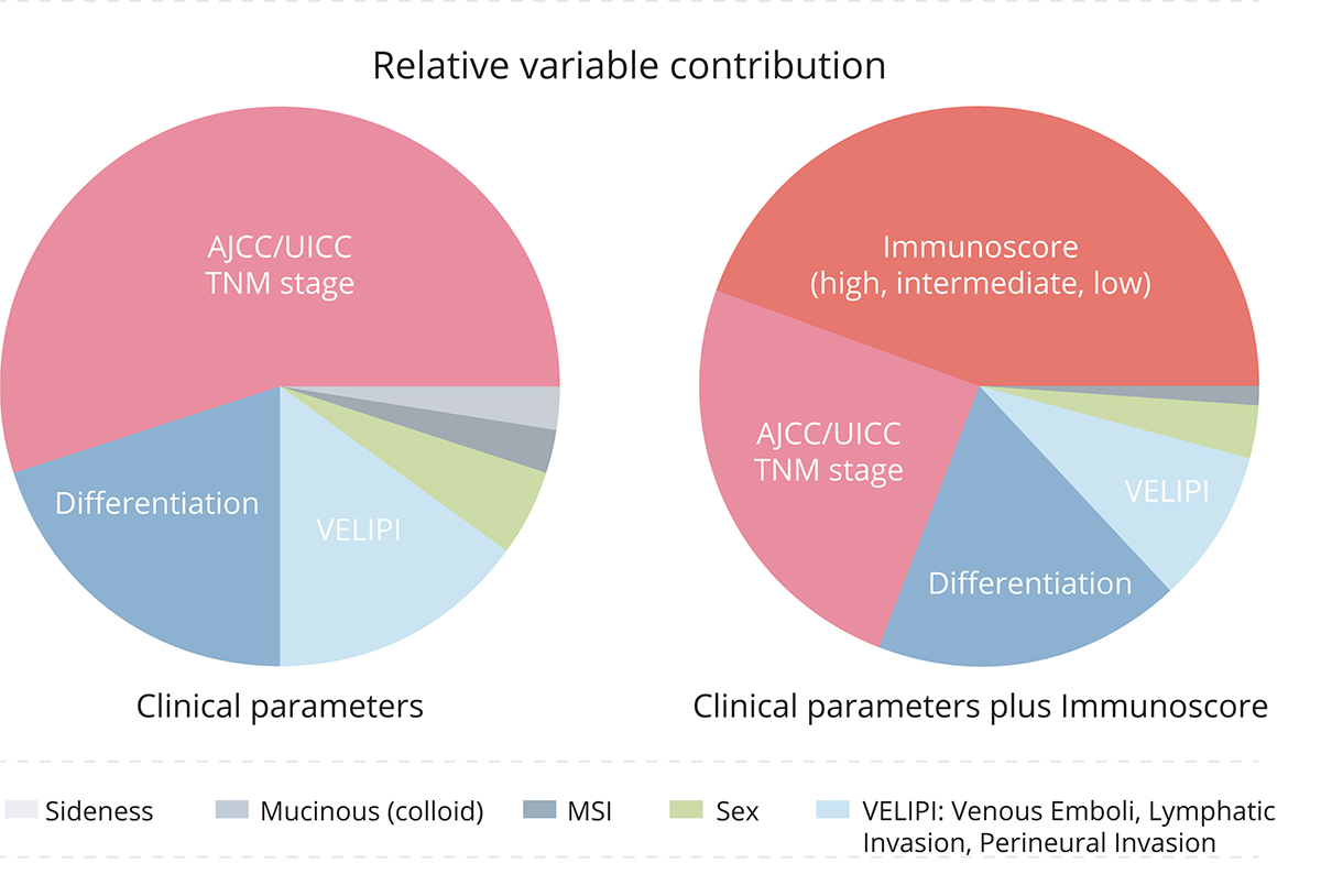 When investigating the strength and dependency of all clinical parameters to predict survival using multivariate analysis (MVA), Immunoscore® and TNM stage were the only significant risk parameters. Thus, the authors supported its implementation and concomitant introduction of an immune component “I” to the TNM (hence becoming TNM-I) cancer classification4.