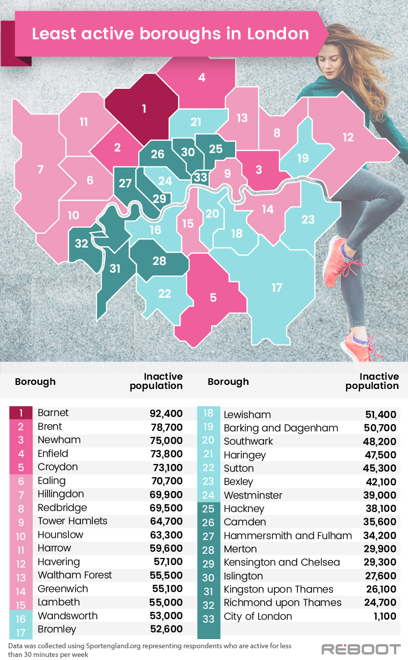 At the other end of the scale, the London boroughs with the lowest number of inactive people are: