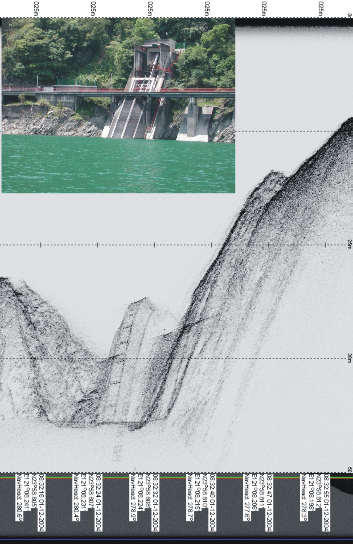 A side-scan sonar survey is applied world-wide and can be used in the ocean by hydrographers, marine geologists, marine engineers and has been extended to the field of environmental applications. One of these applications is the investigation of hydrological land use in lakes and reservoirs where lots of siltation has occurred or an abundance of deposits are carried into territories from upstream or by landslides from the slope. For the offshore wind farm industry, it can be used to inspect the turbine foundation standing on the seafloor to check its stabilisation and cable layout condition.