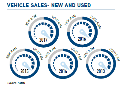 - 2017 saw a slight reduction in new vehicles registered, with a decrease in sales of 5.7%. However, this was still the third largest number in the last decade, with over 2.5 million new vehicles sold.