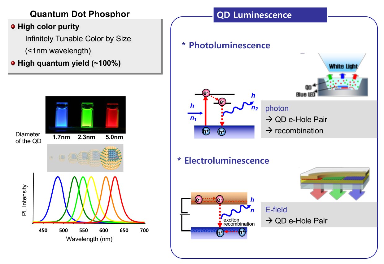 Cd-free cQD materials have been also demonstrated by major suppliers of QDs such as Nanoco (UK), Nanosys, QD Vision (US), and Merck (Germany), who are among major producers in bulk, of Cd-free cQDs for backlight application in LCD displays. Besides Samsung, other device manufacturers and system integrators such as LG, Sony, TLC, HiSense have also demonstrated cQD back-lit units for LCD displays.