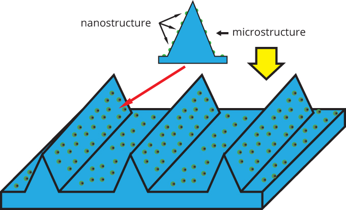 Hence, the micro-structures (riblets) are intended to reduce friction on the surface of the target part. Regarding the nanotechnology developments, the riblets are covered by additional nanostructures to give the surface further functionalities (nanocoating) such as easy to clean properties or erosion resistance (Figure 2).