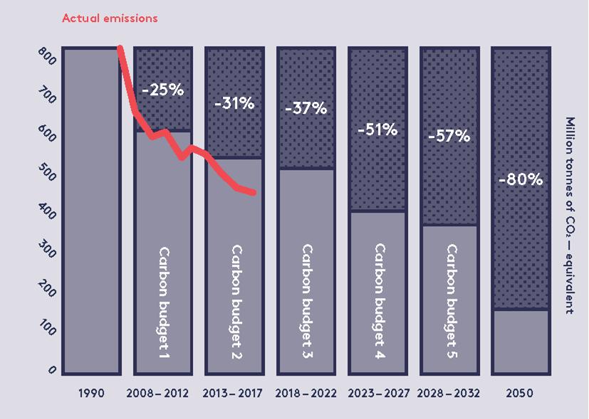The UK introduced and passed the “The Climate Change Act 2008”, which committed the UK to an 80% reduction in carbon emissions relative to the levels in 1990, to be achieved by 2050.