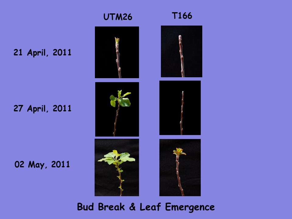 During the past ten years, unseasonably mild winters and erratic spring weather conditions resulting from ongoing climate change have resulted in spring freezing events that have caused catastrophic economic losses to farmers and are inducing shifts in the community structure of the natural environment. These events have raised the importance of finding ways of preventing plants from deacclimating (losing cold hardiness), prematurely losing dormancy and avoiding freezing. In fact, genetic transformation has shown that it is possible to produce plants with delayed dormancy (Fig. 2) and high-resolution infrared thermography has been used to elucidate how plants freeze and how ice propagates throughout the plant (Fig. 3). The latter technique has been especially useful in evaluating frost-protection products and evaluating the freezing response of newly developed genotypes.