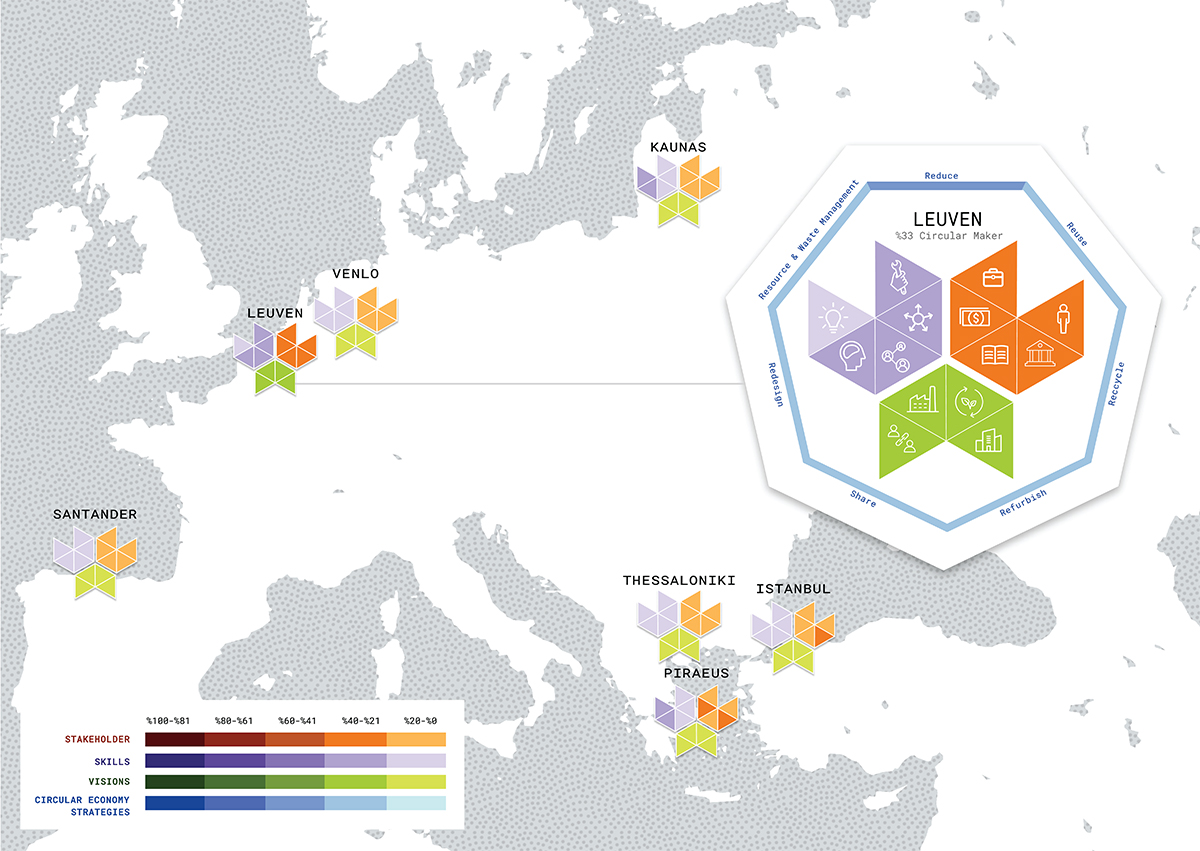 Pop-Machina is the first project to fully define the maker movement, to develop a database and a typology of maker movement initiatives, and to bring them together in a maker movement city passport for each of the seven pilot cities. The city database and passports were built from a survey, and represented in a multi-layered map, as is shown in figure 1. Pop-Machina discerns what drives the makers and their communities, and what their needs are to further develop their circular activities.