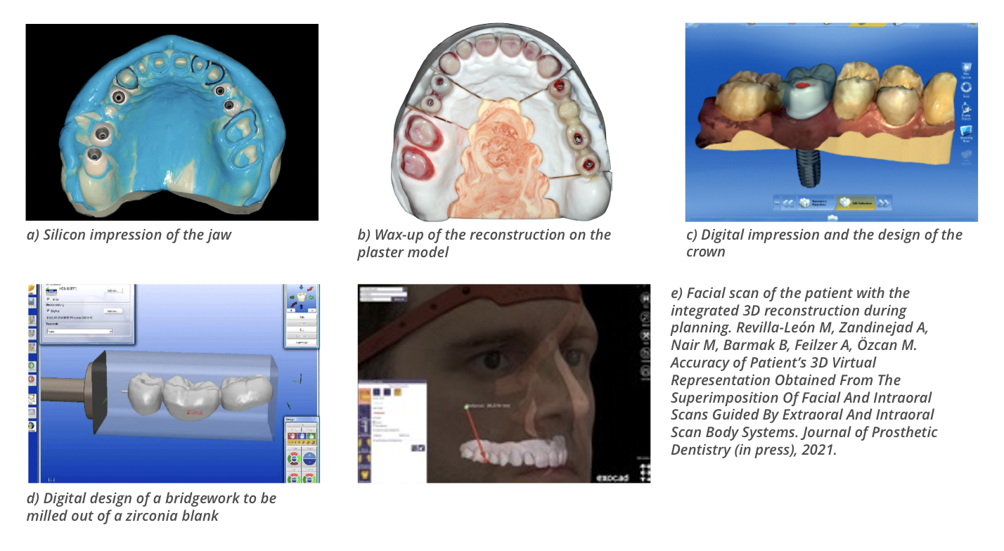 One of the most important aspects of reconstructive rehabilitation is to generate an ideal treatment plan and long-lasting reconstructions created, based on detailed data collection. Digital workflows and each step in the process, needs extensive research before full integration in the clinical workflow. The field is very dynamic and is led often by manufacturers. The digital workflow requires costly investments, therefore, fundamental knowledge on the working mechanism of the systems should be considered before purchasing such systems. In that context, one big challenge is the extremely quick pace of implementation of newly introduced digital tools since the lifetime of such digital devices and innovation are getting much shorter. The other challenge is the integration of different dental digital technologies into the same dental CAD software programme as some manufacturers still prefer to use closed systems. Nevertheless, increased accuracy and precision in digital workflows are expected to decrease chairside time and also reduce the labour on both the dental technician and dentist.