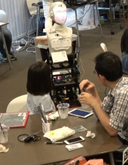 From the perspective of entertainment processes, many customers were surprised and delighted to see various kinds of robot behaviours and human-robot interactions. When Pepper and HSR move smoothly without collision using the 3D scanner, no collision makes them more surprised and delighted. When they see JACO2 correctly pouring a soft drink, they added an interesting new dimension to their experience. They enjoy the extension of HSR body so much. When SociBot goes around and collects empty cups, many children follow SociBot for a long time.