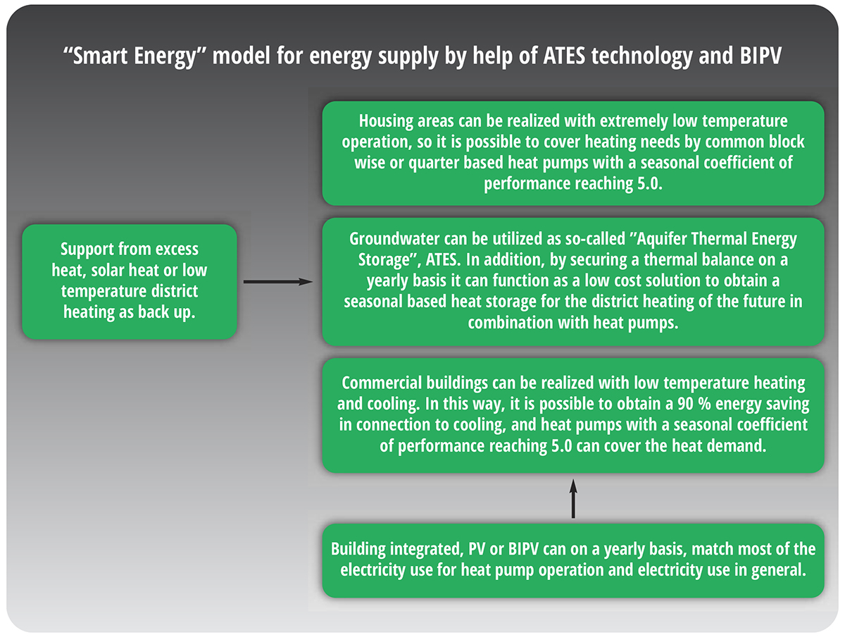 Under the coordination of the non-profit European Green Cities, with the support of the Danish Energy Agency’s Smart Energy pool during 2019 and 2020, a targeted development and dissemination work on ”Smart Energy” solutions will be carried out in several locations in Denmark, where the focus is on the widespread use of renewable energy in combination with optimised energy supply solutions that seek to utilise heat pumps in combination with so-called groundwater heat and groundwater cooling.