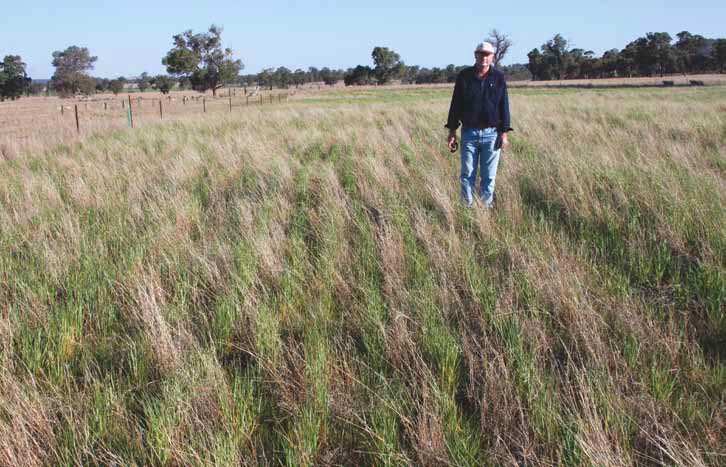 Australian farmer using pasture-cropping to grow a winter cereal crop in rotation over-sown in summer perennial pasture