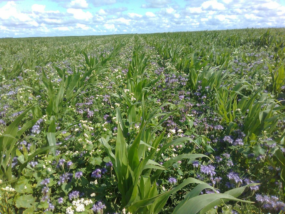 Mixed multi-species cover crop in a row crop rotation