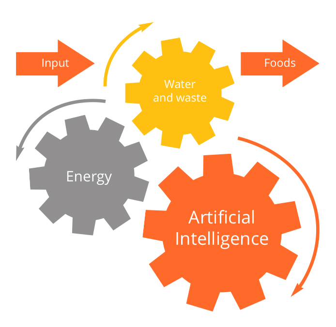 These industrial areas we call Foodparks, where we can produce very large amounts of food in small areas, e.g. 20,000 tonnes of fish and 40,000 tonnes of vegetables on a couple of hectares. In these industrial parks, we have full control of everything that we put in, all the flows in the park and everything that leaves the park.