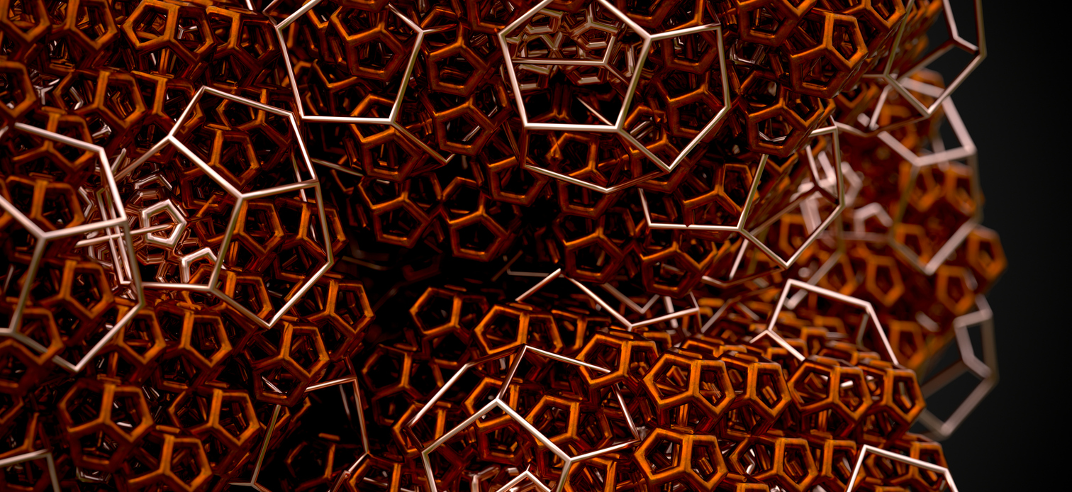 3D computer generated fractal abstract geometric metallic object details isolated on infinite background
