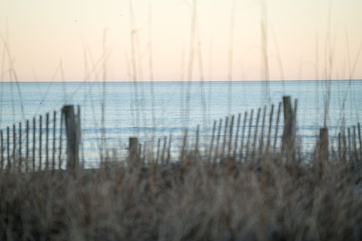 A clear view of the Atlantic Ocean through the blurred dunes at Wrightsville Beach, NC.